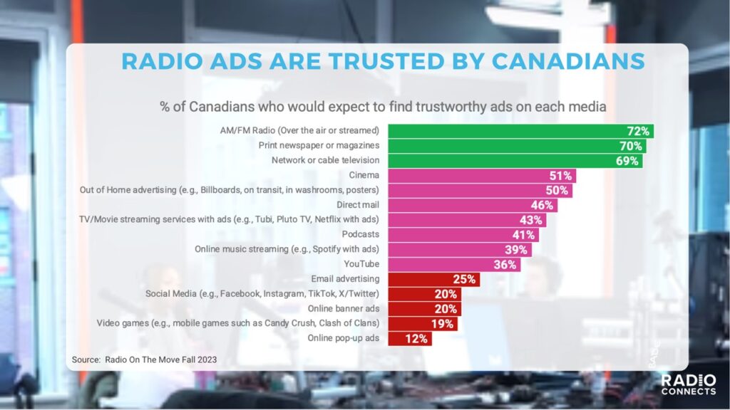 RADIO ADS ARE TRUSTED BY CANADIANSsAudio Research / Awareness, BrandBuilder, Consideration, Engagement, Targetability, Trust&Safety, Uplift